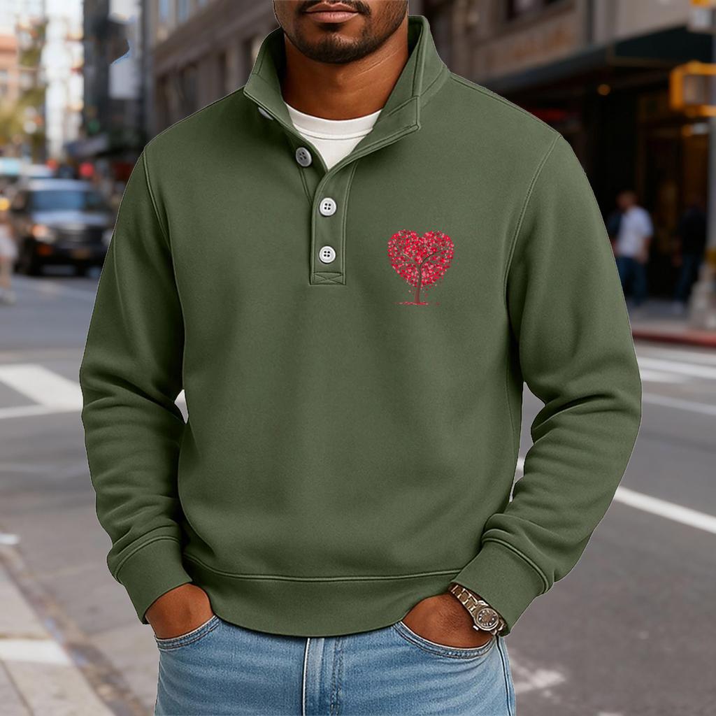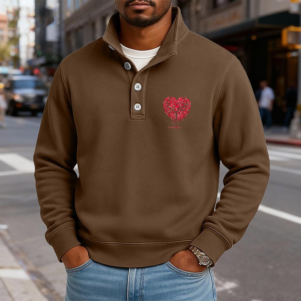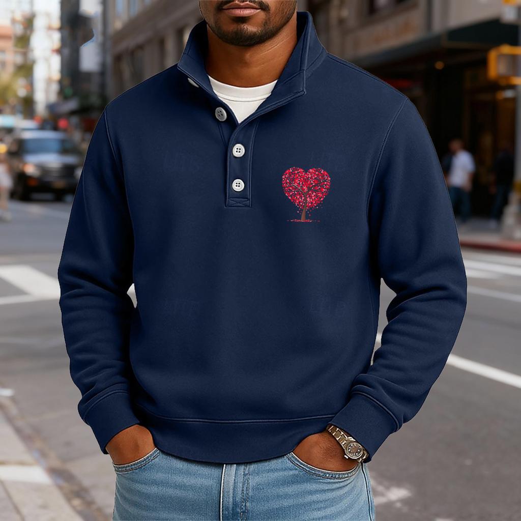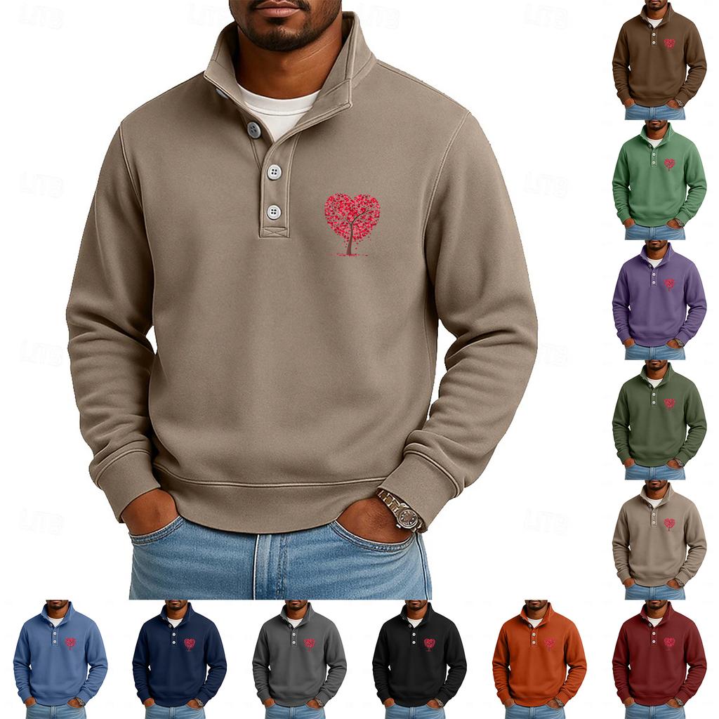 Мужской повседневный топ с воротником-стойкой и длинными рукавами, с принтом, на пуговицах, свитшот