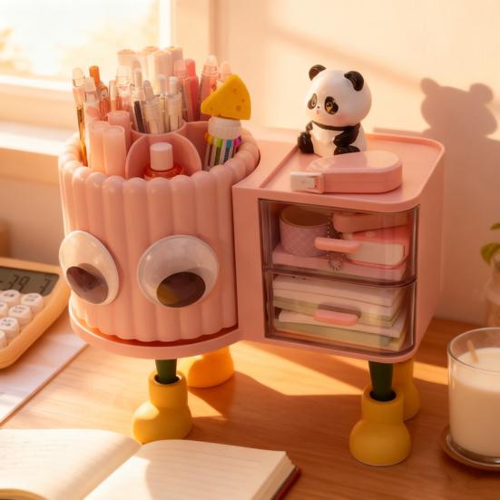 Инновационный вращающийся дизайн «два в одном»: Сочетая вращающуюся подставку для ручек с фиксированным ящиком, эта конструкция обеспечивает быстрый доступ ко всем принадлежностям простым поворотом.. Это устраняет разочарование от копания в беспорядке, помогая детям лучше сосредоточиться на учебе, при этом поддерживая порядок и эффективность на рабочем столе.