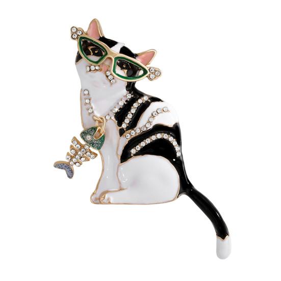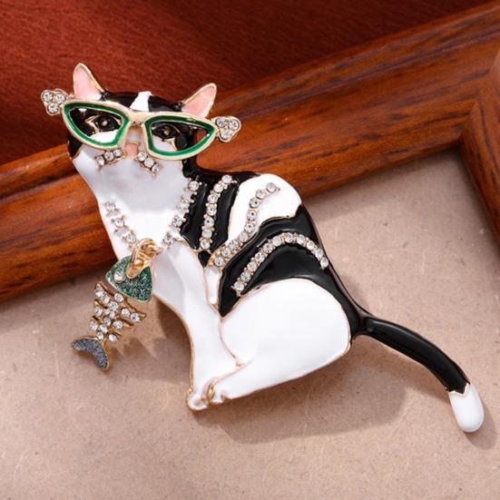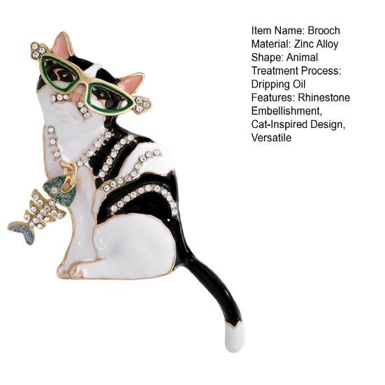 Ослепительное украшение из стразов: Эта брошь изображает тело кошки, оправу очков и подвеску в форме рыбки, густо инкрустированные сверкающими цирконами.. Сложная детализация создает роскошное мерцание, которое прекрасно ловит свет.. Идеально подходит для добавления нотки элегантности в повседневный образ или дополнения вечерних платьев, он мгновенно возвышает ваш стиль изысканной утонченностью.
