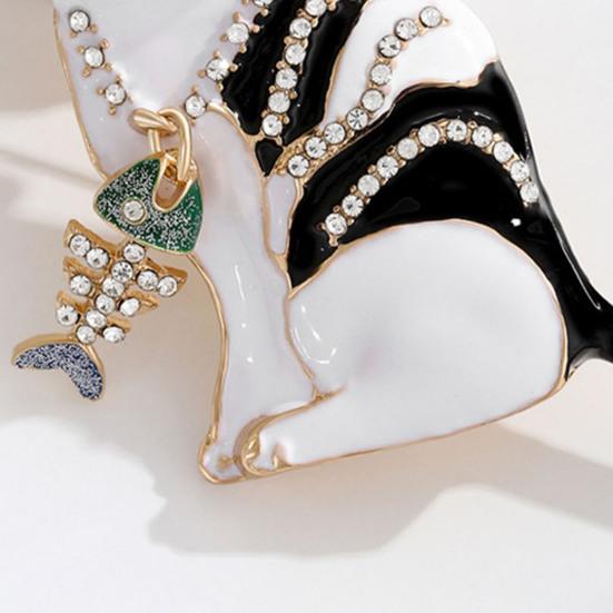 Креативный аксессуар с художественным чутьем: Сочетая классические мотивы «кошачья любовь + любовь к рыбе», брошь включает подвеску в виде рыбки, инкрустированную стразами, свисающую с шеи кошки.. Эта полная фантазии деталь добавляет изделию детской забавы и художественного чутья.. Это служит отличительным выражением личности, идеально для людей, ищущих аксессуары, которые выделяются своей креативностью.