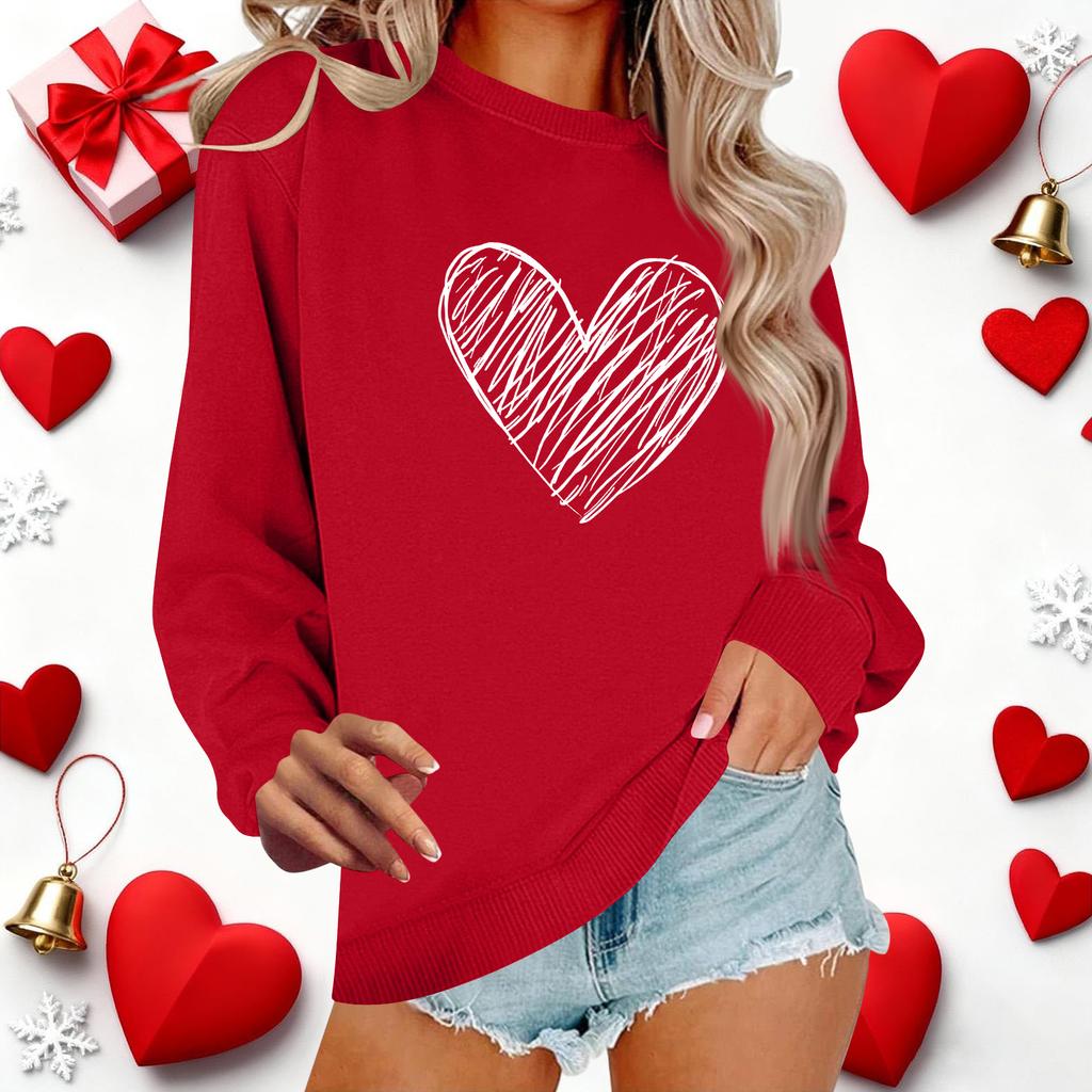 Женский повседневный пуловер с круглым вырезом и длинным рукавом с принтом ко Дню святого Валентина