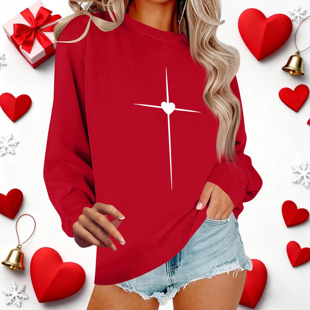 Женский повседневный пуловер с круглым вырезом и длинным рукавом с принтом ко Дню святого Валентина