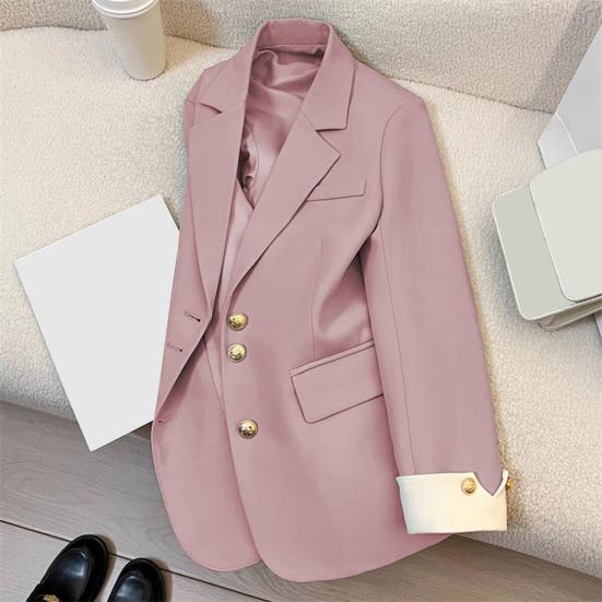 Женский пиджак изготовлен из высококачественного полиэстера, обеспечивающего мягкое и удобное ощущение, что отличает его от традиционных формальных костюмов.. Благодаря простым однотонным расцветкам, он излучает изысканный, высококлассный вид, сохраняя при этом повседневный и универсальный стиль..