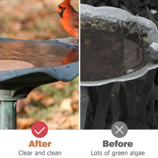 Просто в использовании и не требует дополнительных инструментов: Просто поместите медный диск в вашу купальню для птиц — никакой сложной установки или дополнительных чистящих средств не требуется; работает автоматически, чтобы упростить уход за птичьей поилкой.