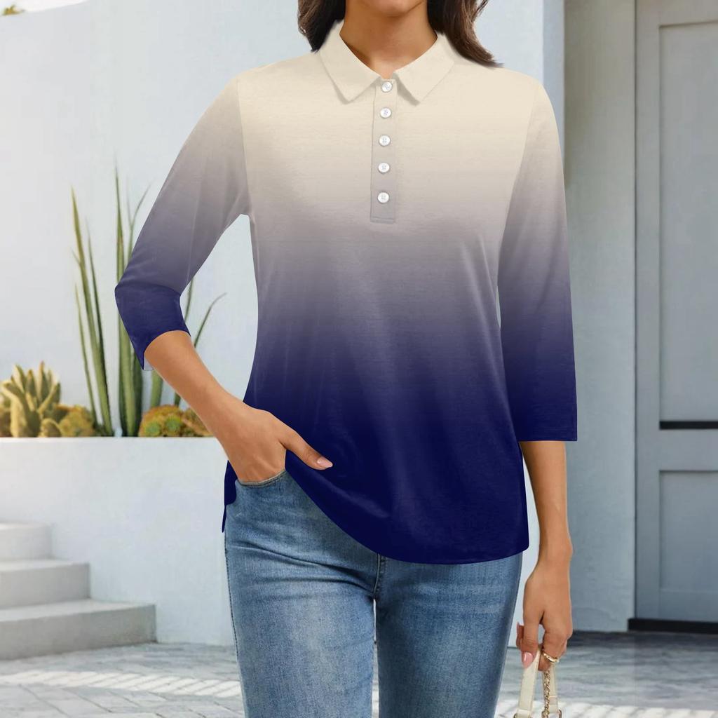 Женская модная повседневная рубашка с лацканами и рукавом 3/4 с принтом, женские топы на пуговицах