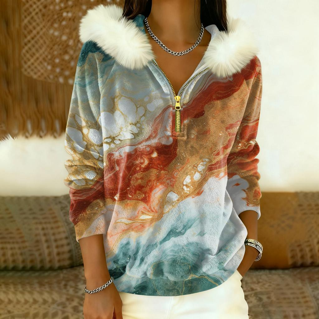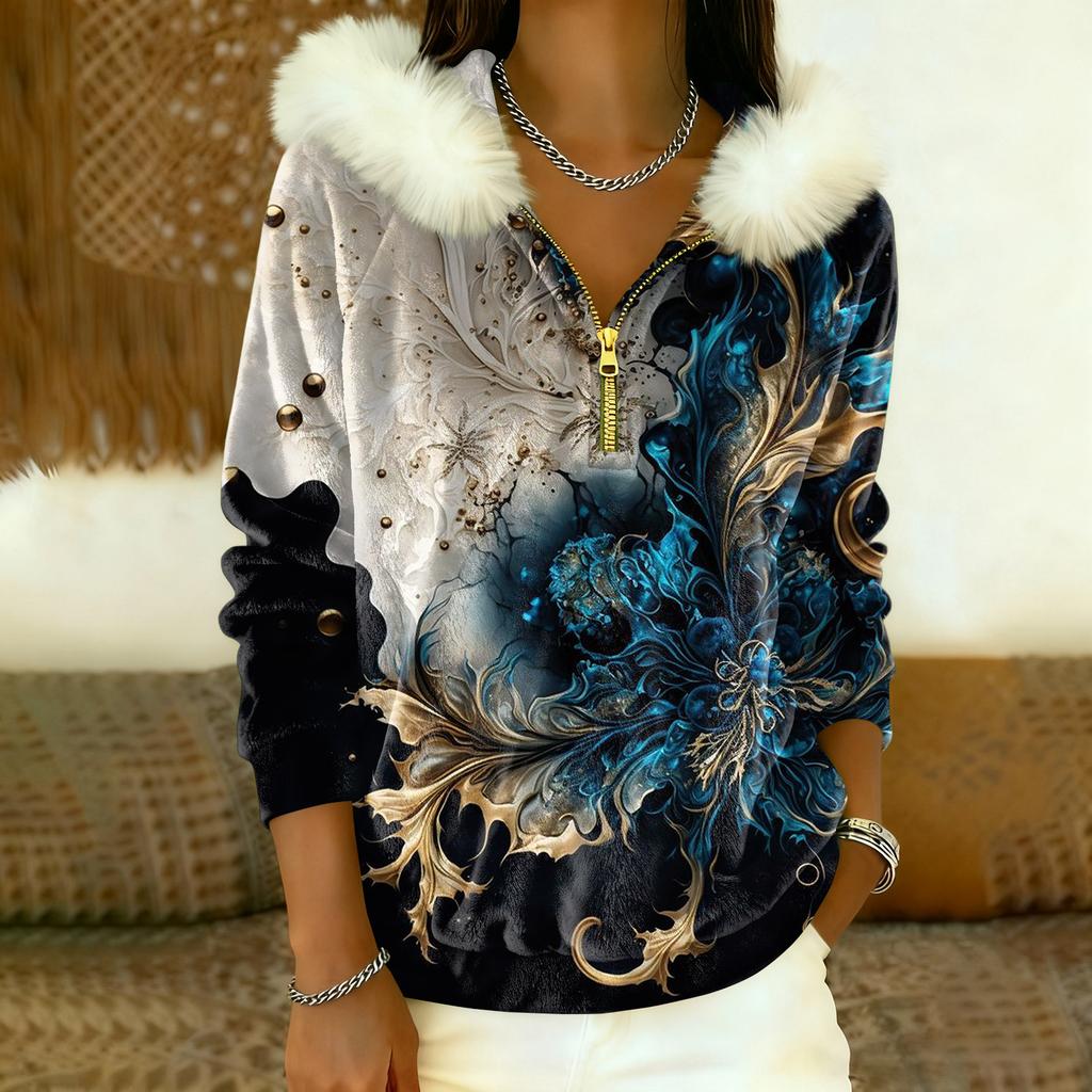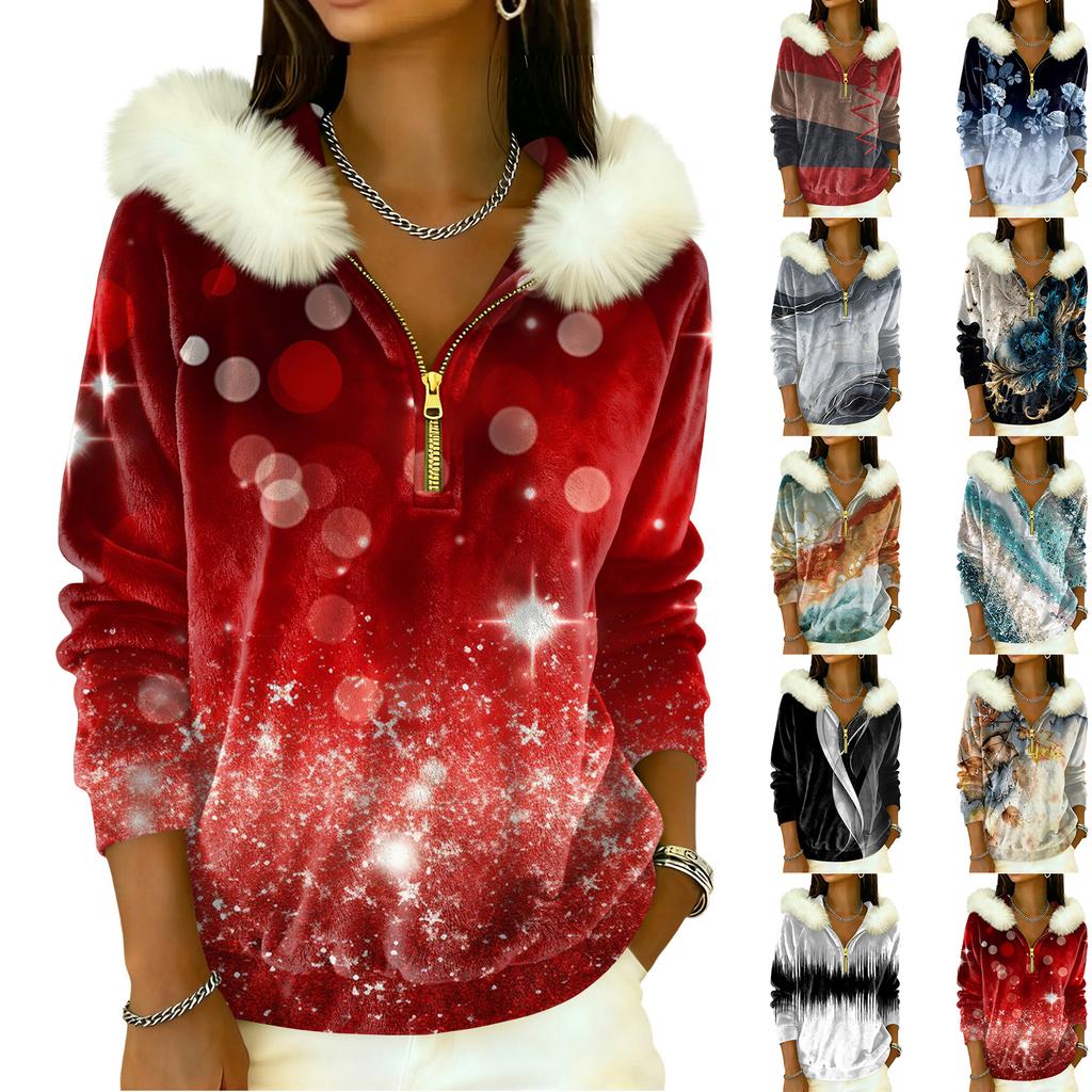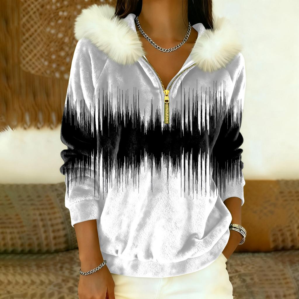 Женский Свободный и Удобный Повседневный Модный Топ с Капюшоном на Полумолнии, с Длинным Рукавом и Обычной Печатью
