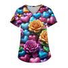 Женская модная футболка с V-образным вырезом, карманом и короткими рукавами с принтом ко Дню святого Валентина, униформа и топ для воспитателя