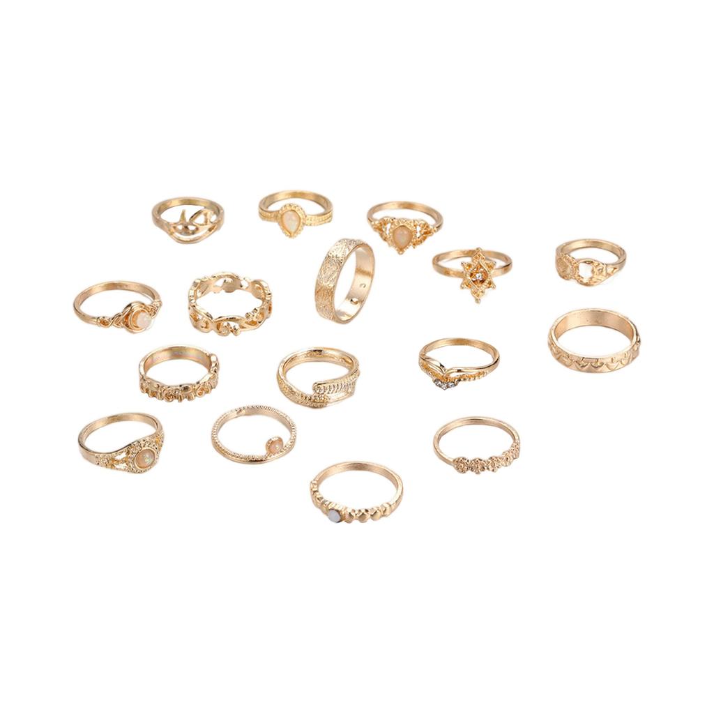 Модный женский набор из 16 колец - Женское кольцо Металлическое кольцо Глянцевое кольцо Металлическое кольцо Праздничный подарок