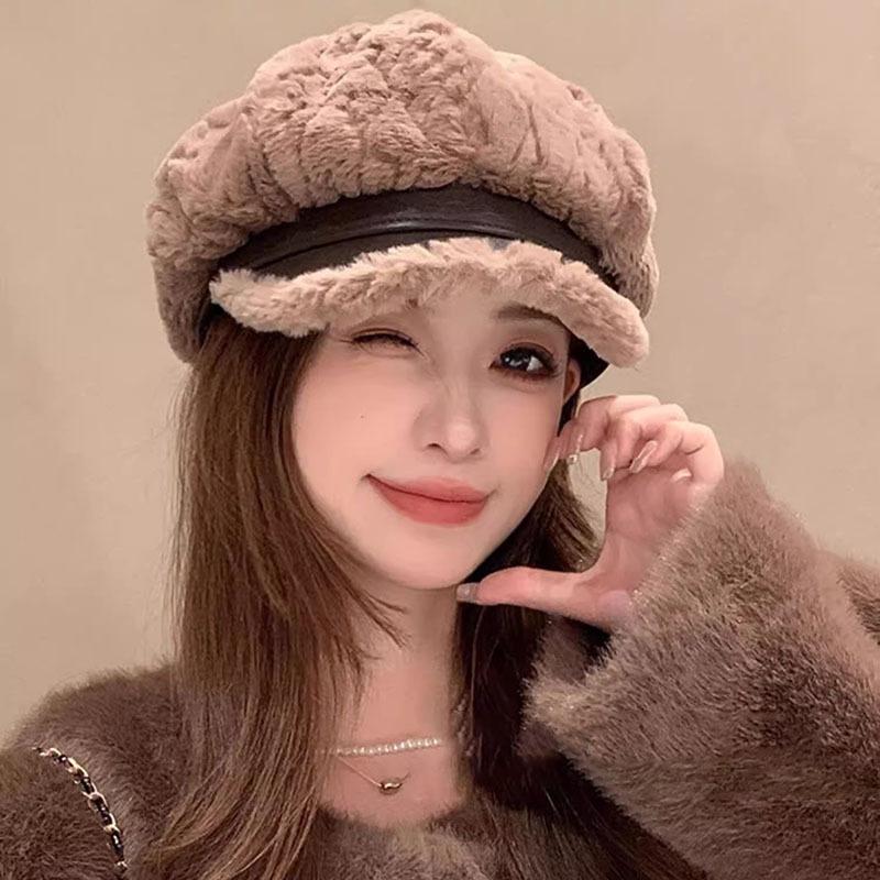 1 шт. Женская флисовая восьмиугольная шляпа-берет, повседневная, теплая, универсальная, однотонная шапка-бини, подходит для праздничных поездок и повседневной носки