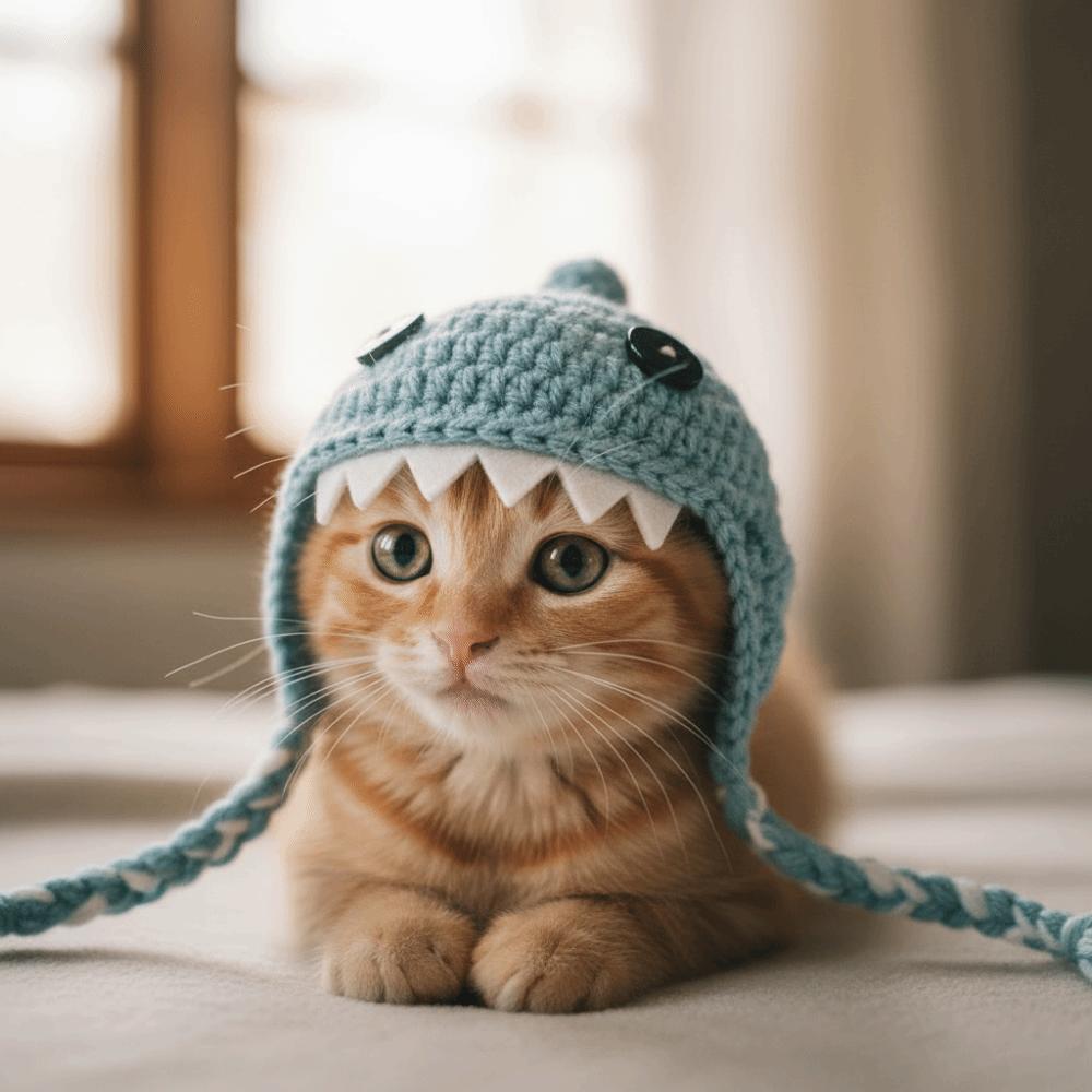 Funny Cat Knitted Hat Braid Design Pet Cosplay Headwear Cute Cat Warm Hat Photo Props