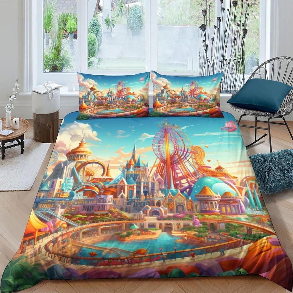 Комплект пододеяльников для парка развлечений для детей, мальчиков, девочек, легкие пуховые пододеяльники, декор комнаты, 2 наволочки, 1 пододеяльник, без одеяла