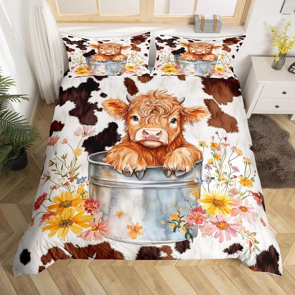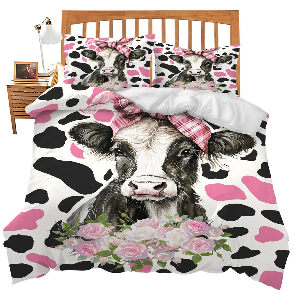 Комплект постельного белья с рисунком коровьей шерсти для детей. Легкий пуховый наполнитель для детской комнаты. Размер Queen. 2 наволочки, 1 пододеяльник (без одеяла).