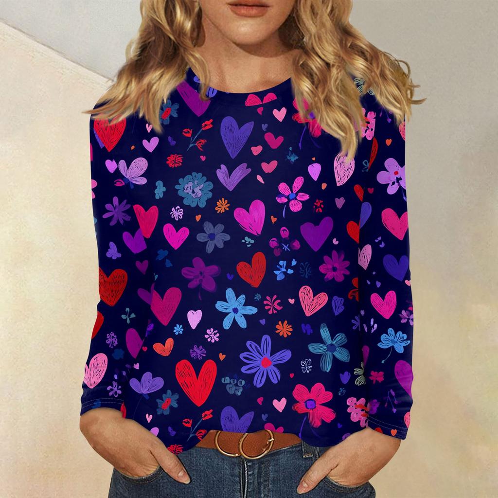 Женский модный пуловер с круглым вырезом и длинными рукавами с принтом сердечек ко Дню святого Валентина
