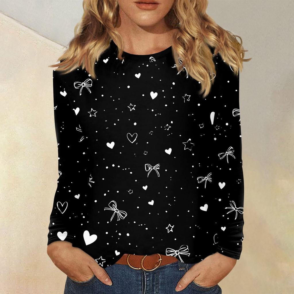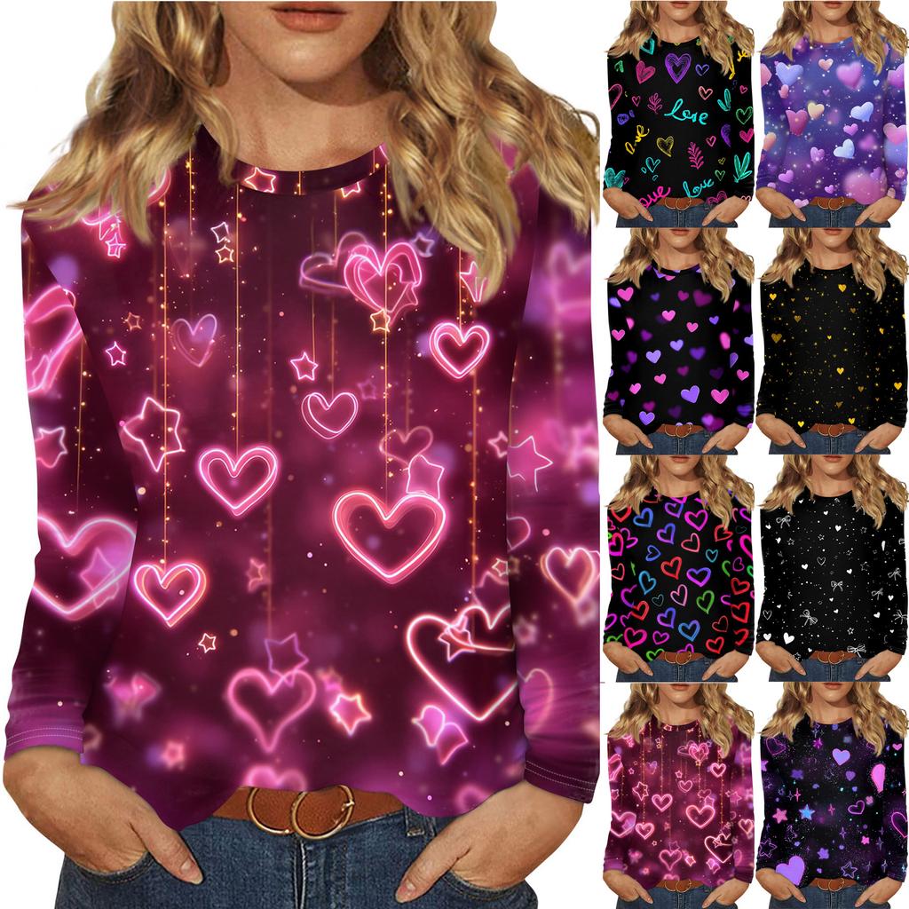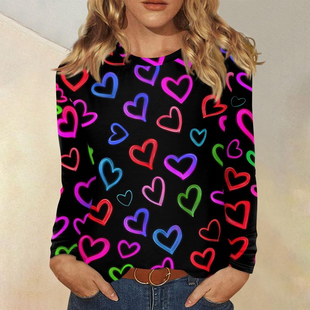 Женский модный пуловер с круглым вырезом и длинными рукавами с принтом сердечек ко Дню святого Валентина