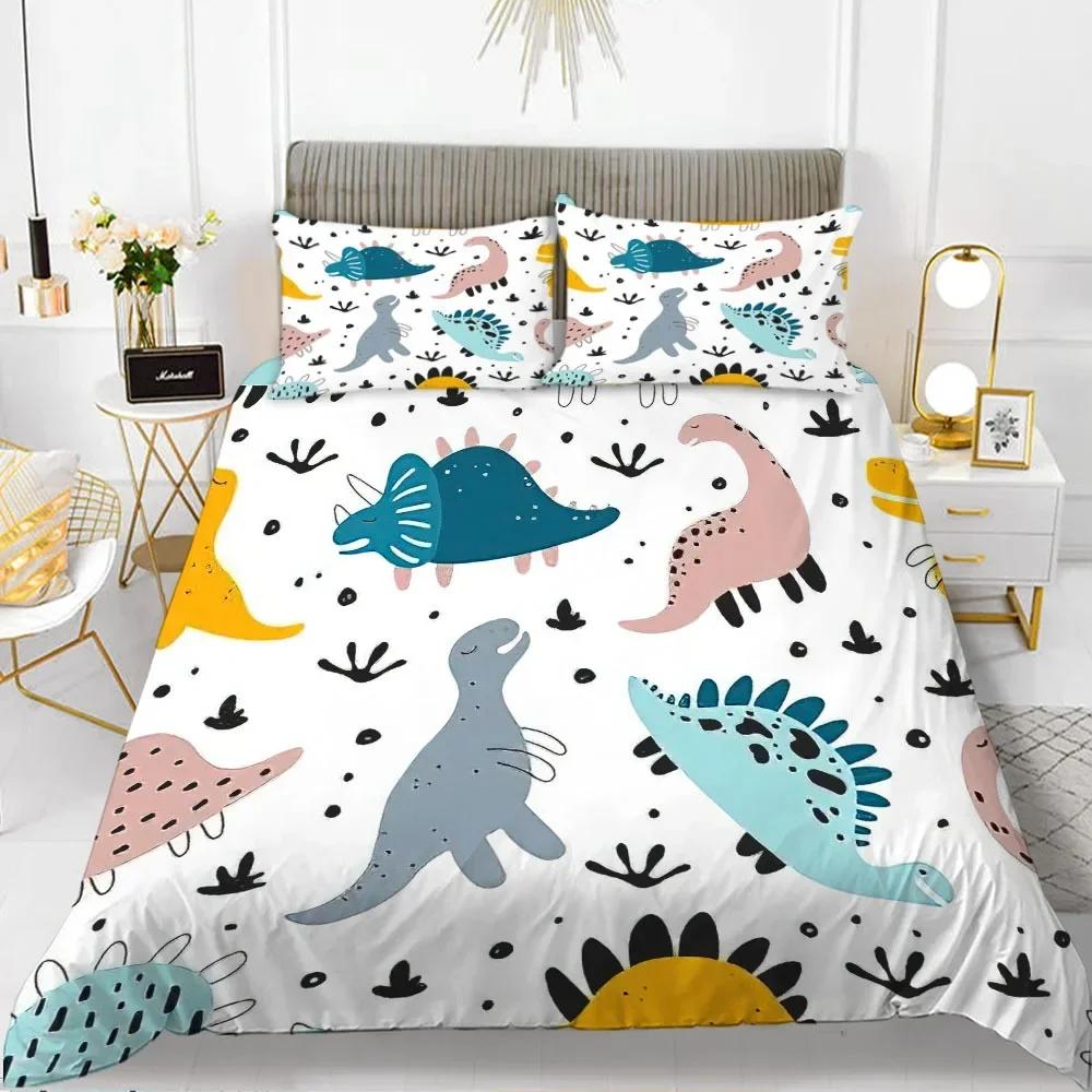 3D Small Dinosaur Cartoon Cute Simple Bedding Set Couple King Single Size For Kids Children Polyester Quilt Cover Pillow Case
