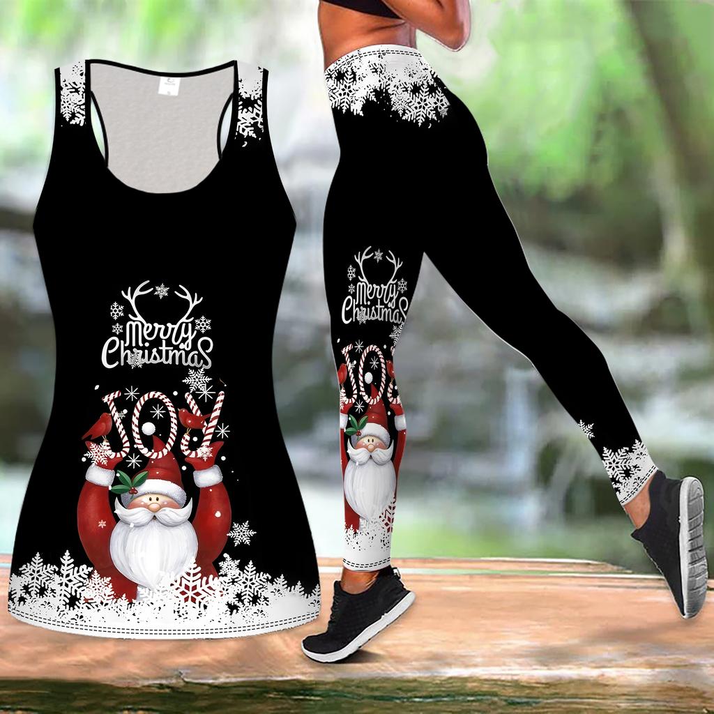 Праздничный принт Рождество Наряд для йоги для женщин Модные леггинсы для тренировок Фитнес Спортивный повседневный Набор для йоги Спортивный костюм