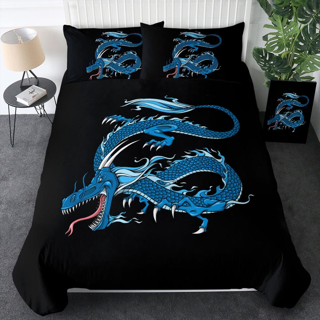Red Dragon King Queen Duvet Cover Western Mythical Animals Bedding Set For Kids Teens Adults Magical Creature 2/3Pcs Quilt Cover