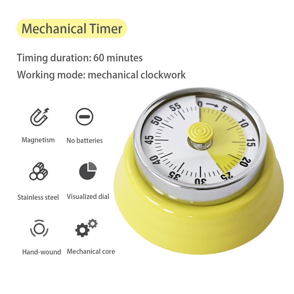 Этот визуальный механический таймер использует четкий красный диск для отображения оставшегося времени, хорошо видимый из любой точки комнаты или кухни.. Не требуя батареек, он работает просто от физического завода — никаких хлопот. Прочное магнитное основание надежно крепится к вашему холодильнику или металлическим поверхностям, экономя место на столешнице. Это эксперт по точному времени для кухонной выпечки и идеальный инструмент для повышения концентрации и внимания во время учебы или работы.. Стабильный, надежный и интуитивно понятный — делающий управление временем легким!