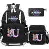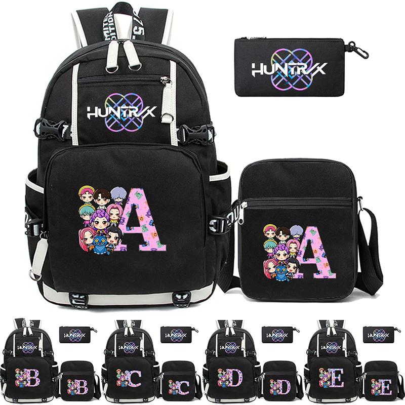 3Pcs/set 26 English Letter K-pop Printed Backpack with Pengcil Case Shoulder Bag for Teenager Girl Boy Bookbag Large Capacity Waterproof Travel Bag