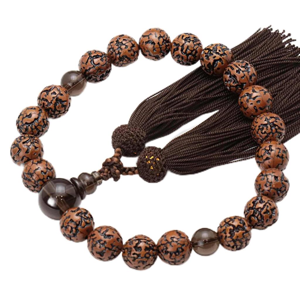 Мужские буддийские четки, Киотский стиль, 20 бусин, Отделка кашеу-лаком, Коричневый кварц, Шелковая кисточка, Подходят для всех конфессий, Идеально для неформальных