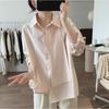 Хлопковая рубашка женская новая весна-осень свободного кроя в корейском стиле с простым дизайном и асимметричным верхом