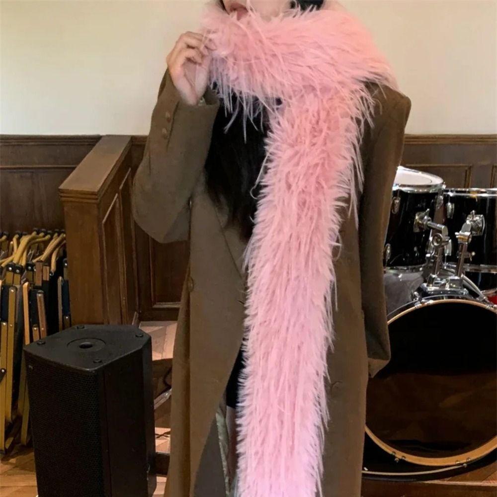 Толстый пушистый плюшевый длинный шарф-полоска 180 см, женский шарф с кисточками, модная мягкая шаль для улицы