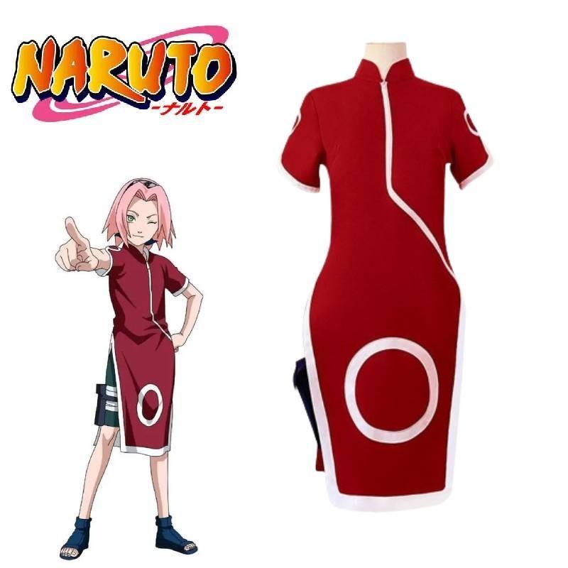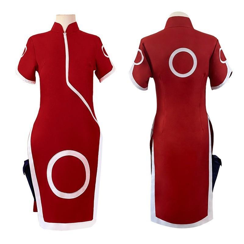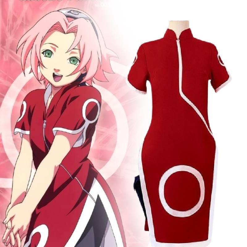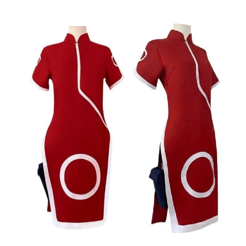 Костюм для косплея Харуно Сакуры премиального качества, унисекс, красный ципао, наряд для аниме-ролевых игр