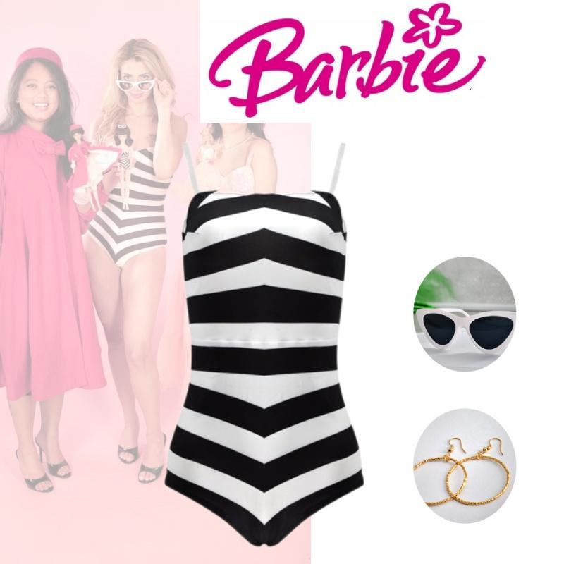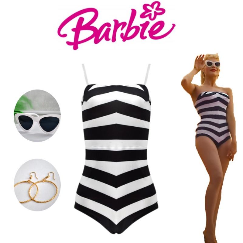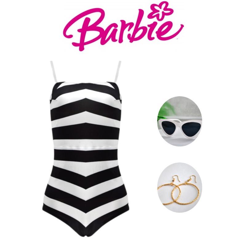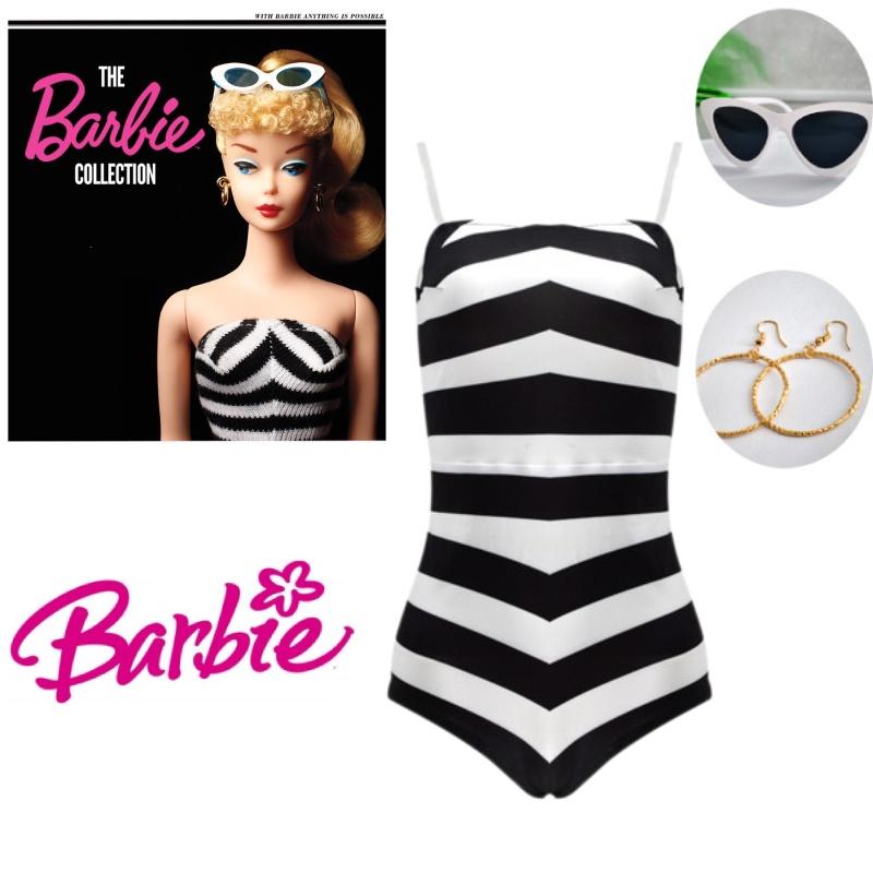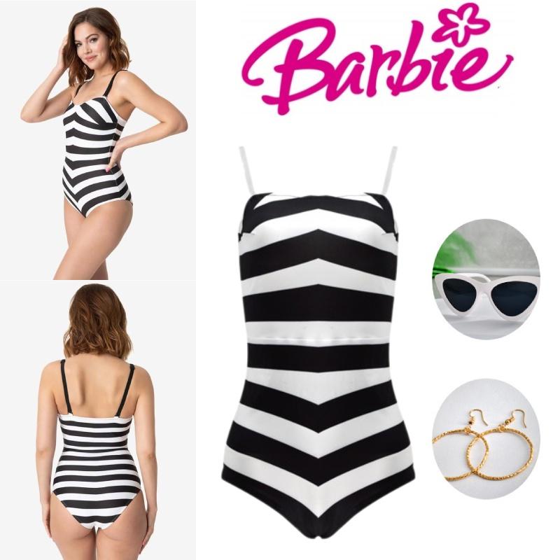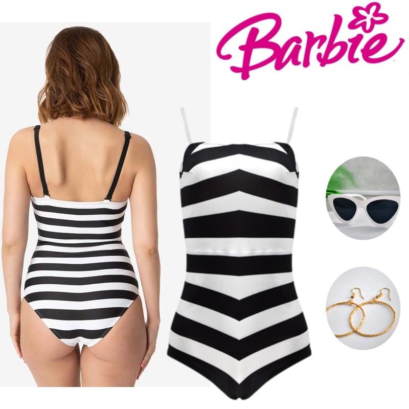 Приготовьтесь примерить на себя образ Барби с этим потрясающим черно-белым полосатым купальным костюмом.