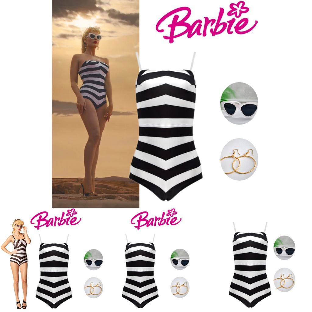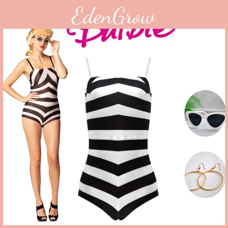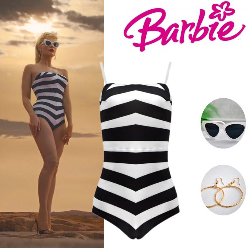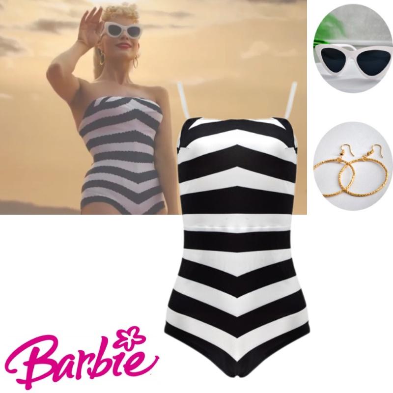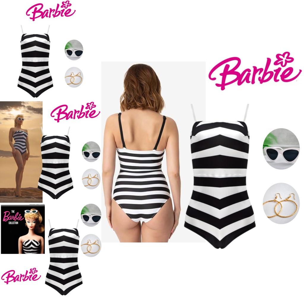 Приготовьтесь примерить на себя образ Барби с этим потрясающим черно-белым полосатым купальным костюмом.