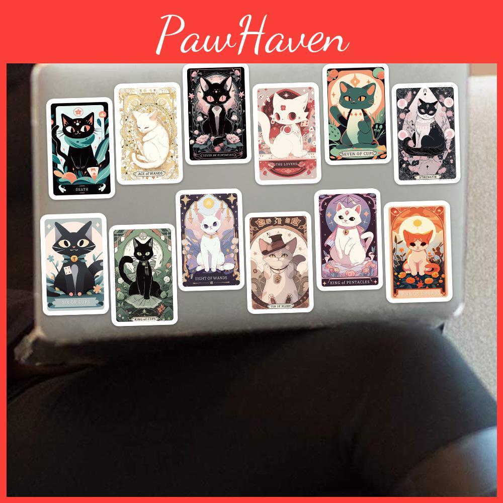 Так зачем ждать? Выразите свою любовь к кошкам и Таро с нашим набором из 78 наклеек Таро с мультяшными кошками.. Приготовьтесь превратить свои вещи в холст милоты и креативности. Наклейте их, отклейте и дайте волю своему воображению!