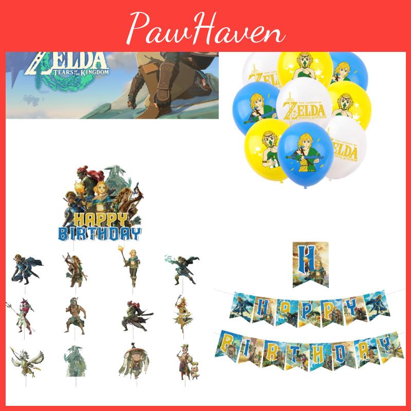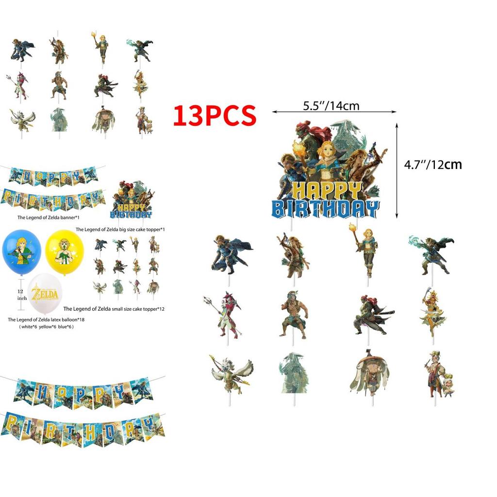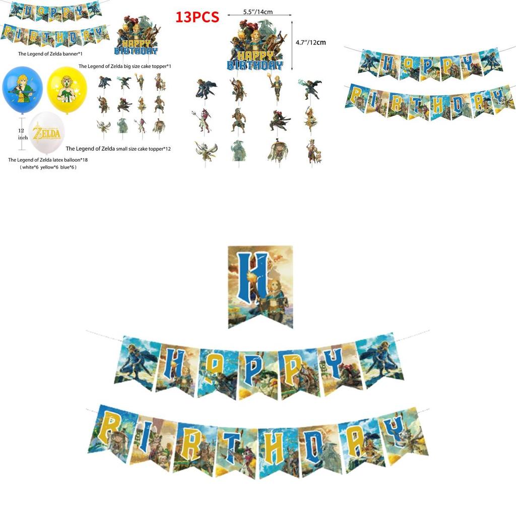 Набор для украшения на день рождения в стиле игры Zelda с баннерами, топперами для торта и воздушными шарами Starry Sky