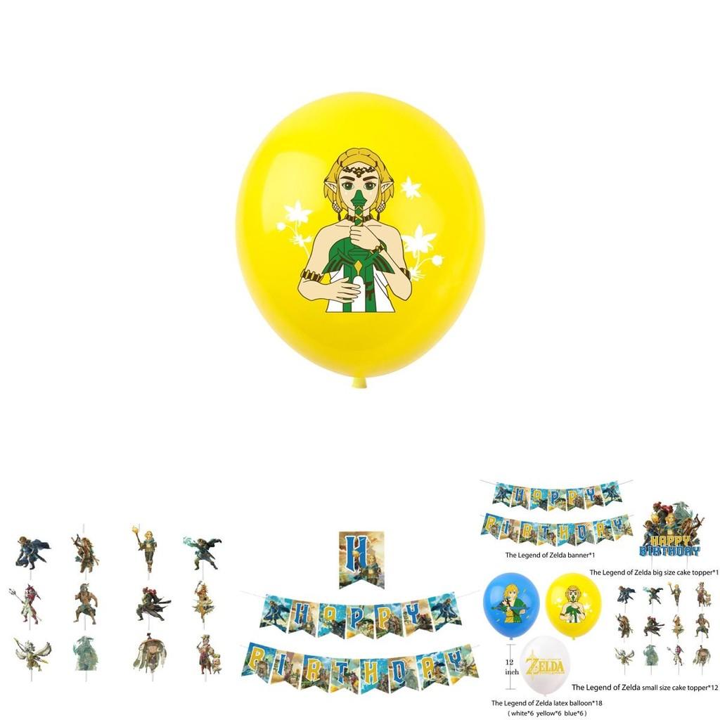 Отпразднуйте особенный день вашего ребенка с набором для украшения на день рождения в стиле Zelda! Этот набор для вечеринки включает баннер, топпер для торта и 18 воздушных шаров, все с изображением культовых персонажей и символов из любимой серии игр Legend of Zelda.