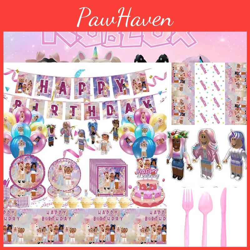 Pink Girl Gaming Theme Kids Birthday Party Tableware Set Roblox Girl Decorations Supplies