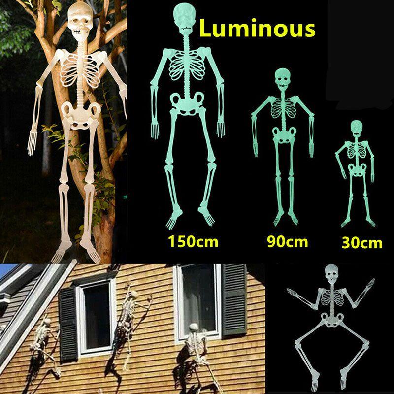 Страшный реквизит на Хэллоуин, светящийся висящий человеческий скелет, украшение для вечеринки на открытом воздухе