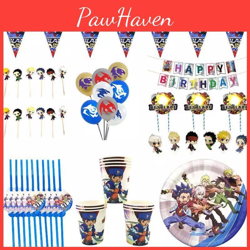 Vibrant Happy Birthday Balloons Beyblade Burst Theme Party Set For Boys Celebrations