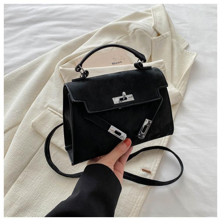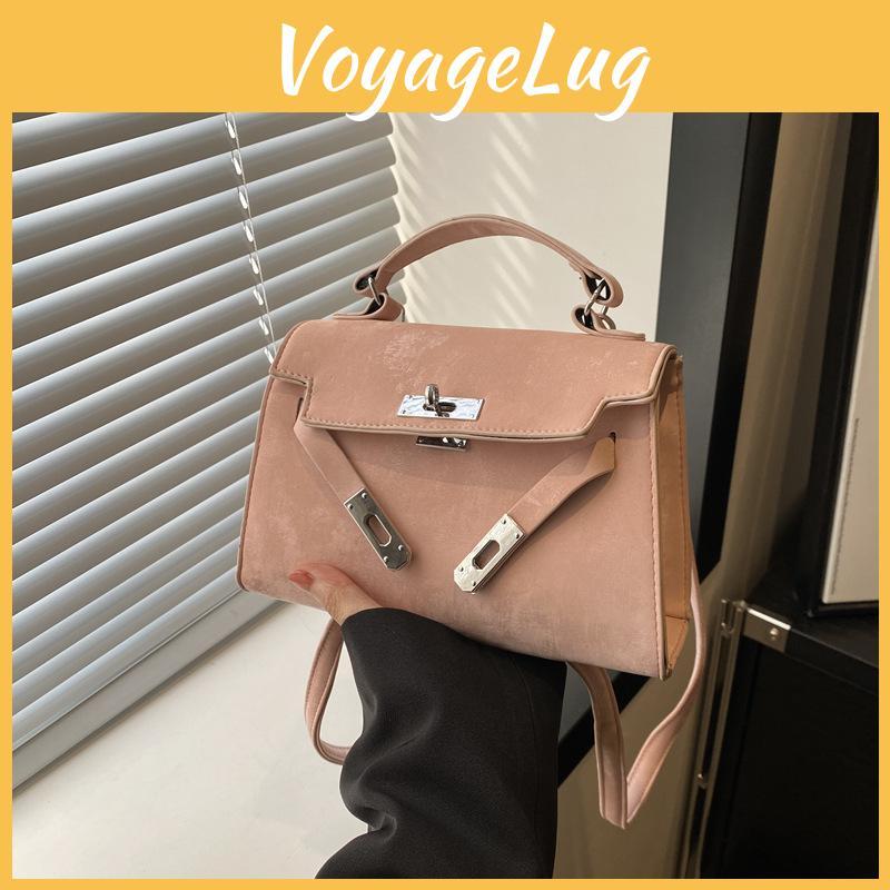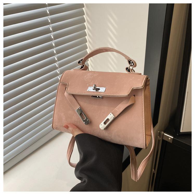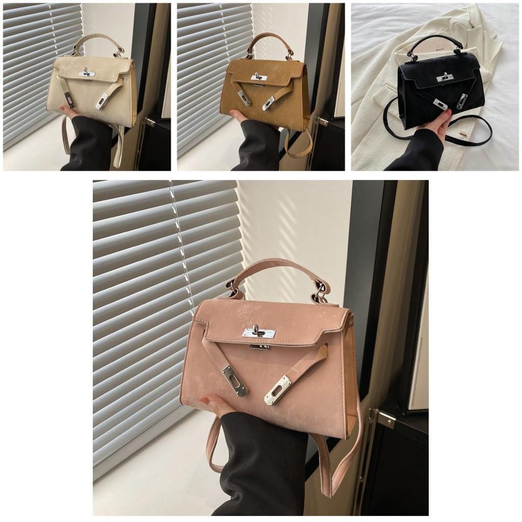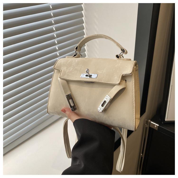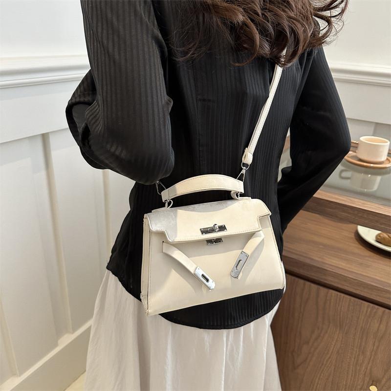 Fashionable Casual 2024 New Spring Retro Solid Color Lock Closure Minimalist Shoulder Tote Bag