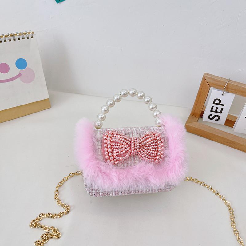 Charming Pearl Bow Mini Handheld Bag For Kids With Stylish Modern Design And Breathable Fabric