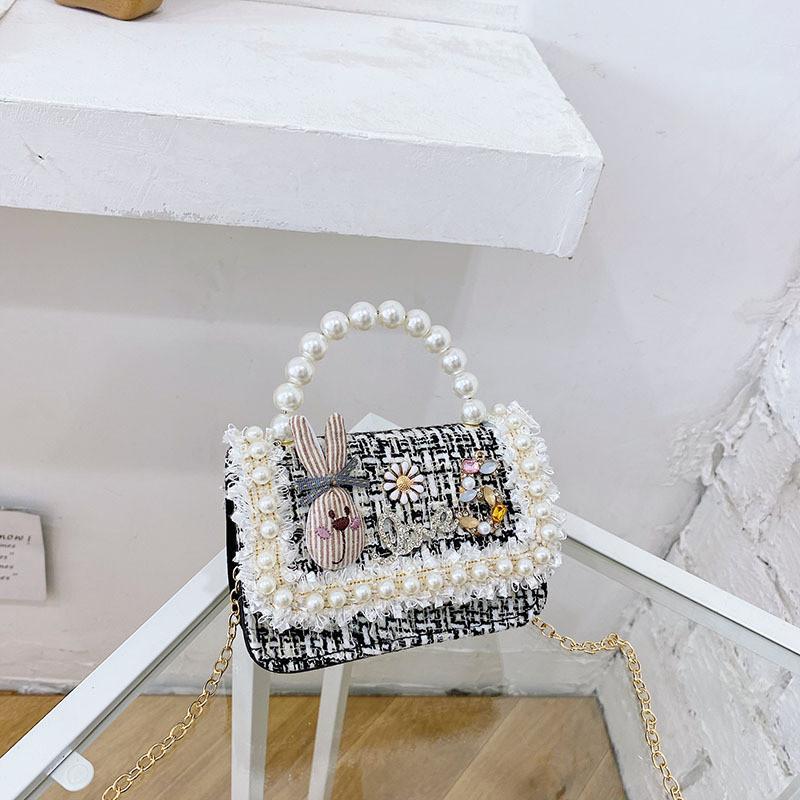 Stylish Mini Girls Handbag With Pearl Bow Design For Fashionable Princesses In Black And White Colors