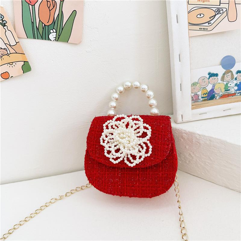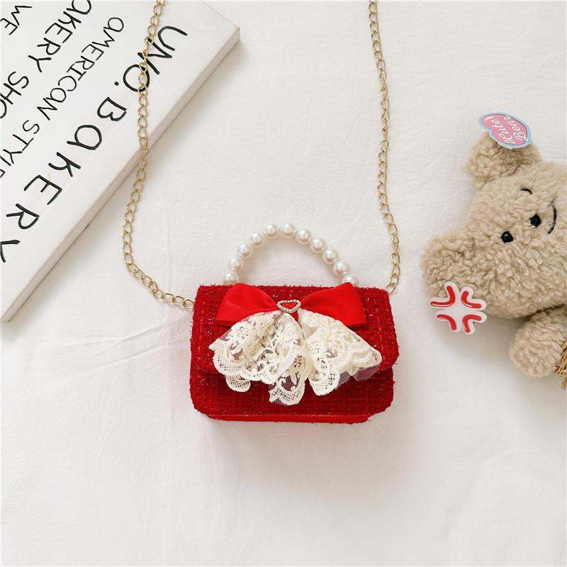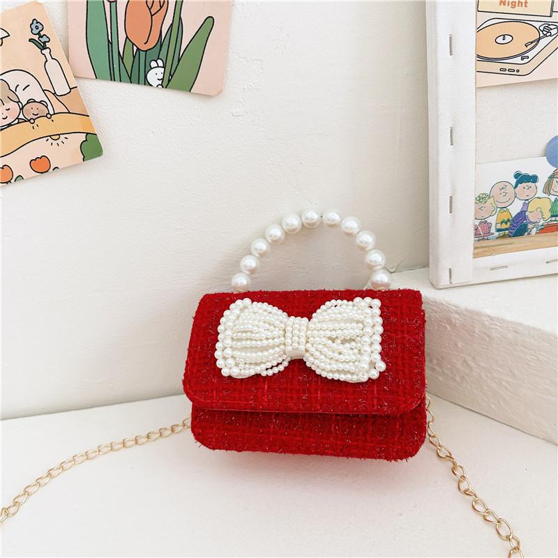 Стильная красная жемчужная сумка с бантом для детей Шикарный модный кошелек на цепочке для девочек Идеально подходит для повседневного использования