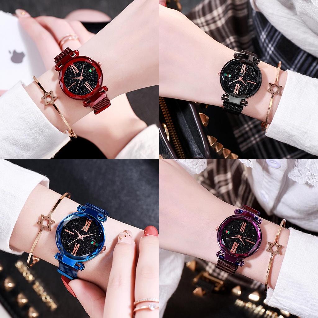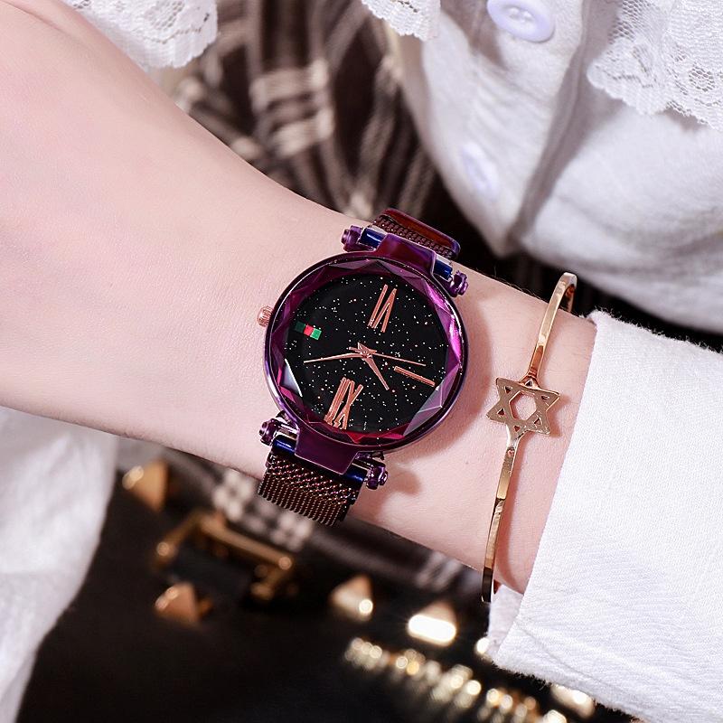 Модные женские часы для ленивых с магнитным ремешком и дизайном «Звездное небо»