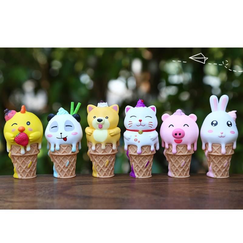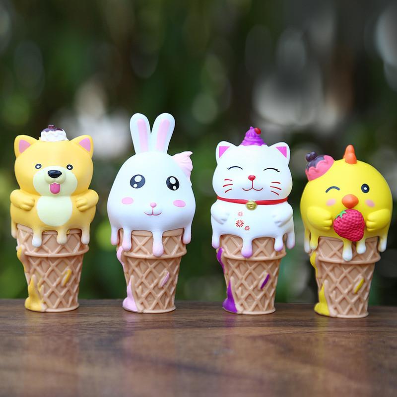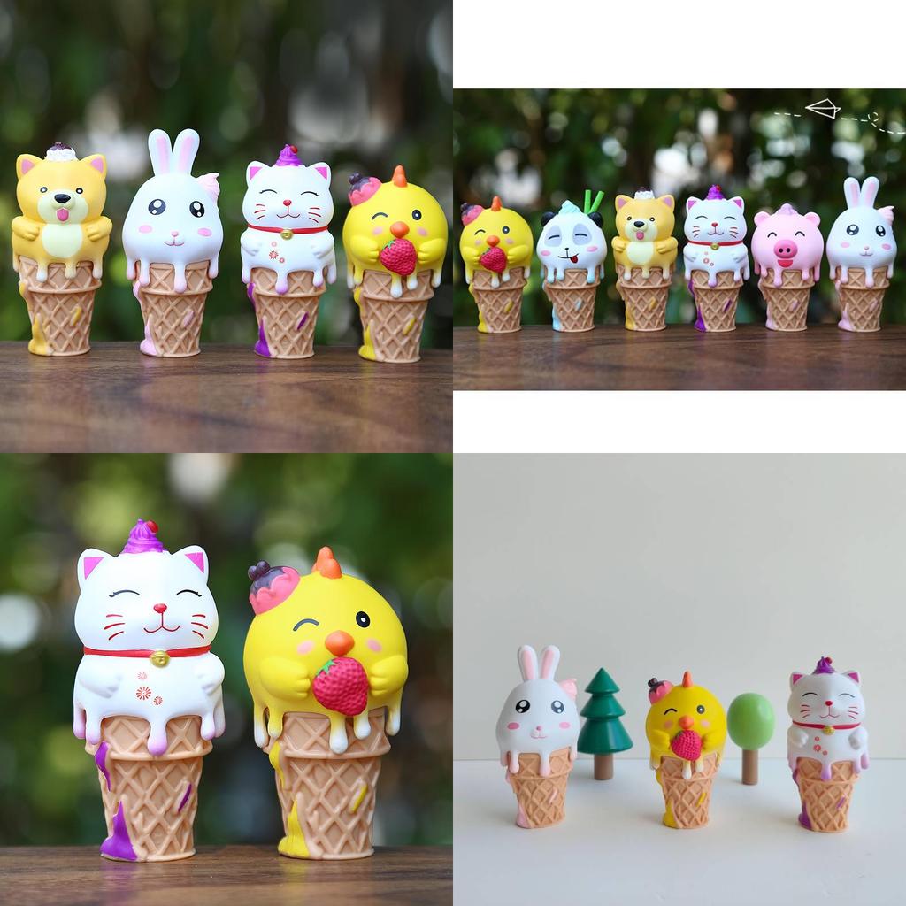 Delightful Ice Cream Animal Collectible Figurines Cute Shiba Inu Rabbit Panda Desk Decor