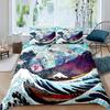 Японская волна Король Королева Пододеяльник Синий Морской Постельный комплект Кленовый лист Луна Покрывало Хокусай Укиё-э Полиэстер Чехол для одеяла