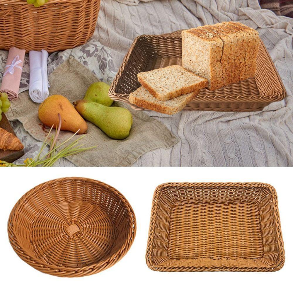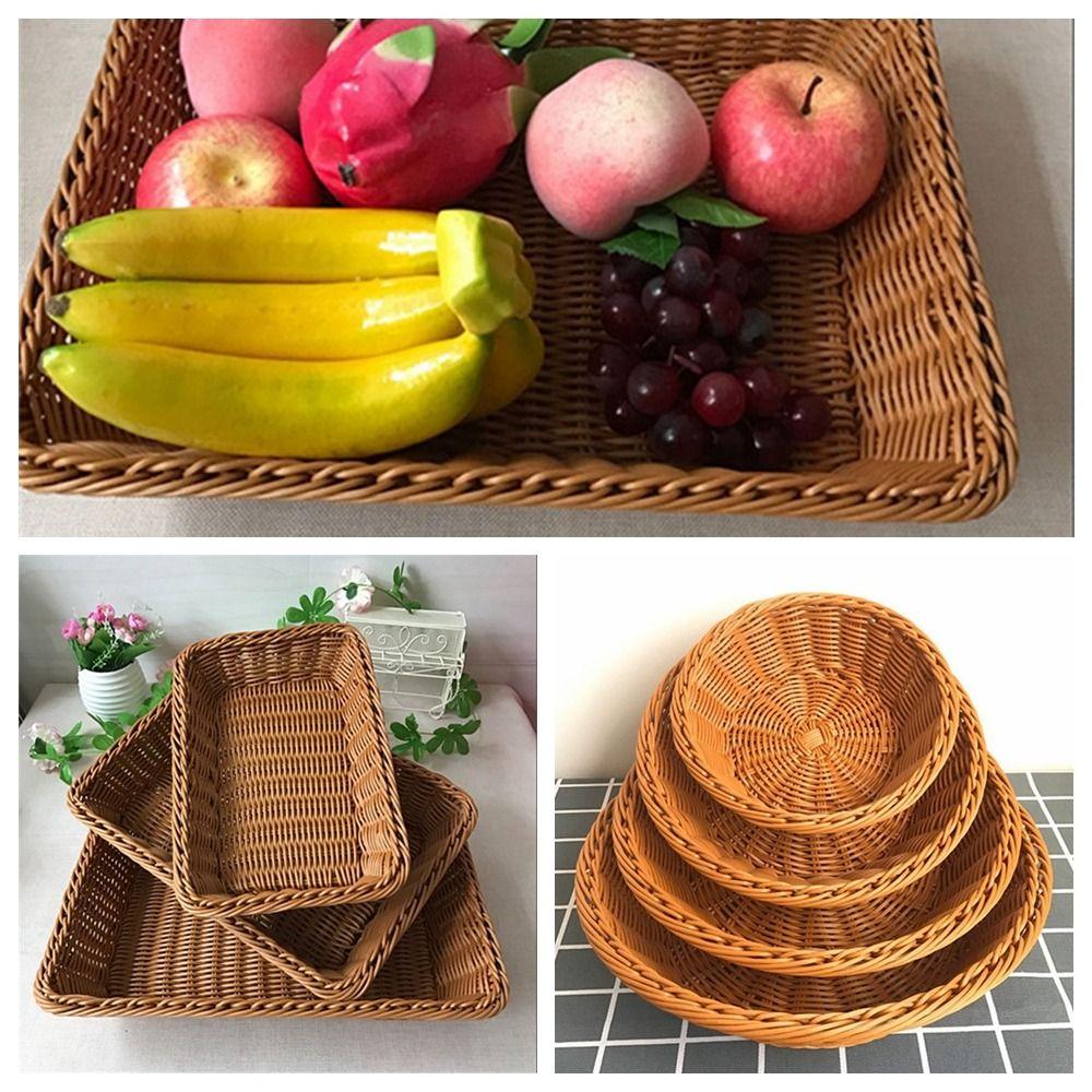 Плетеная кухонная корзина для хранения, круглая, прямоугольная, поднос для кофе, хлеба, фруктов
