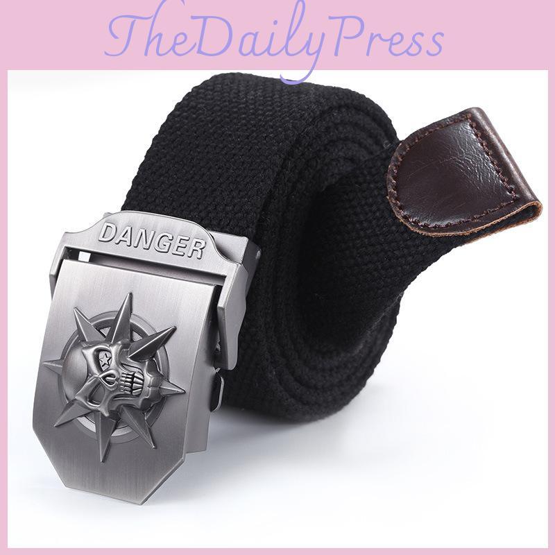 Premium Canvas Belt With Skull Buckle For Men And Women Adjustable 120cm