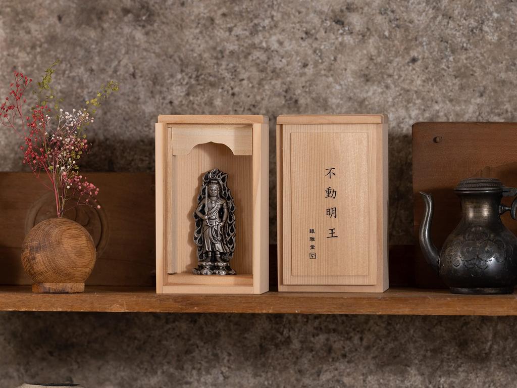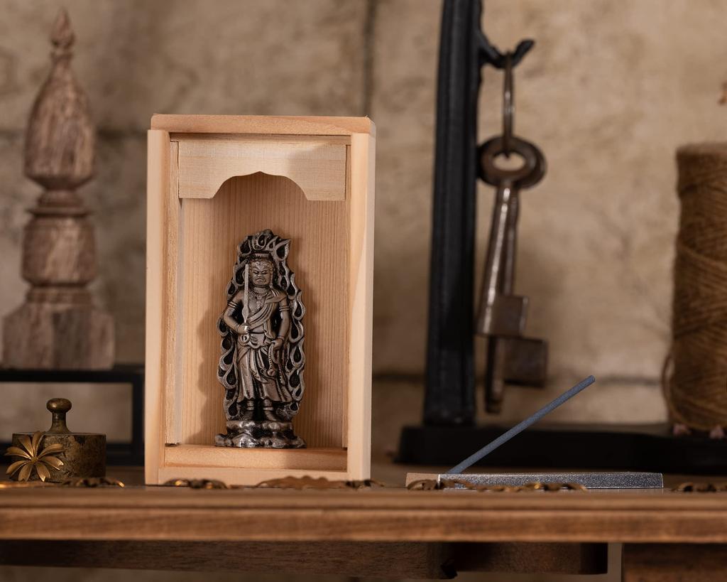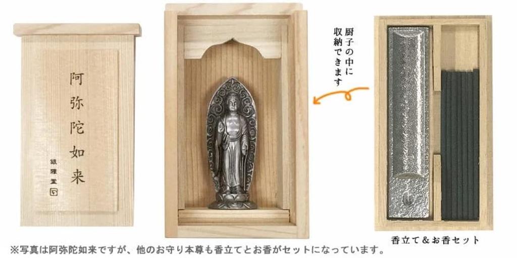Статуэтка Будды Акала, святилище, подставка для благовоний и набор благовоний (старинное серебро) - Скульптор: Кэйсю Ватанабэ (родившийся в Год Петуха) -
