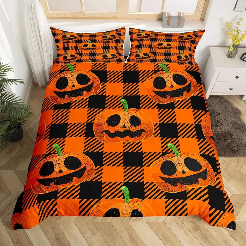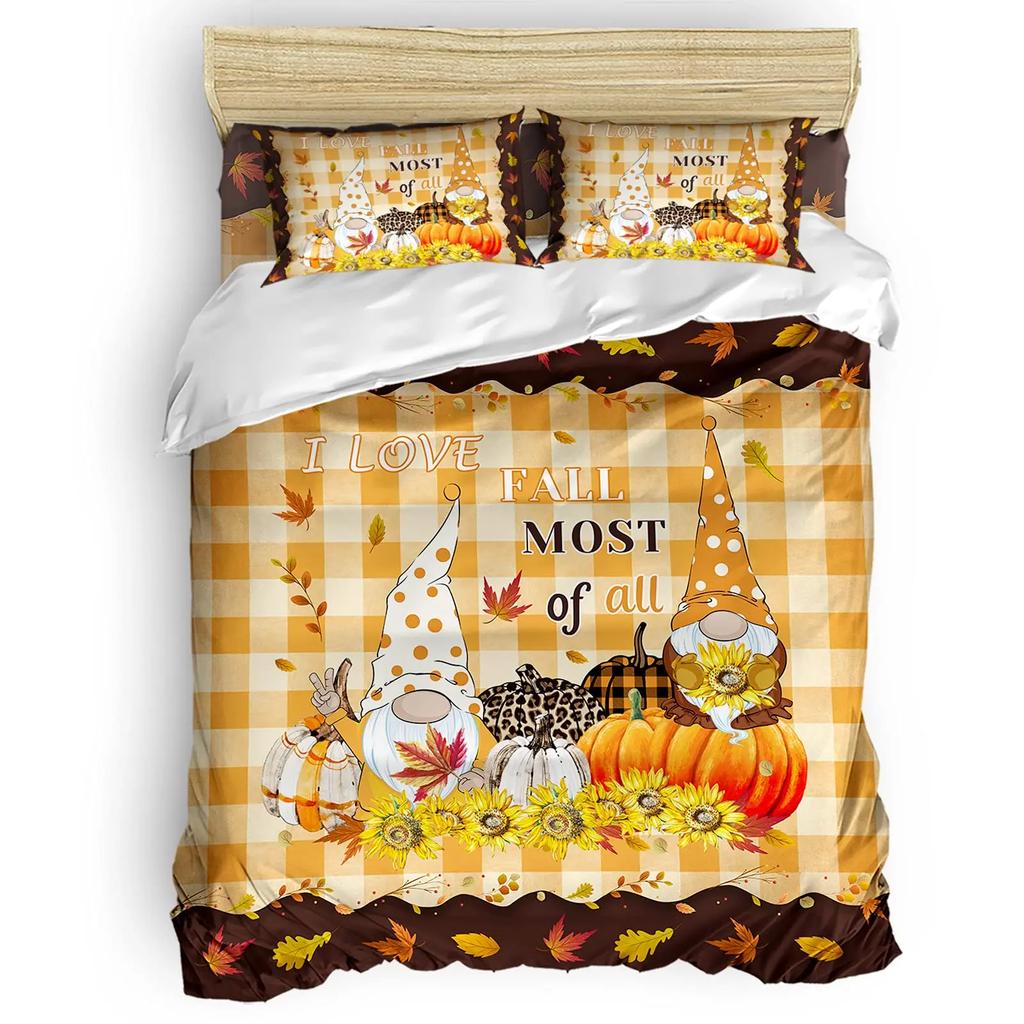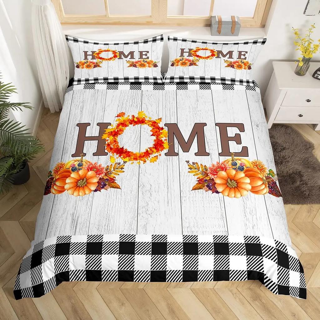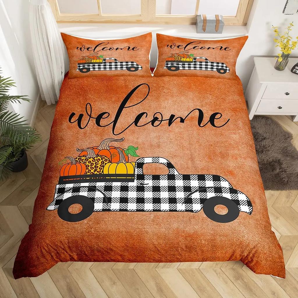 Thanksgiving Day Pumpkin King Queen Bedding Set Kids Cartoon Autumn Duvet Cover Fall Leaf Comforter Cover Polyester Quilt Cover