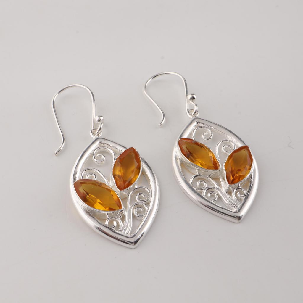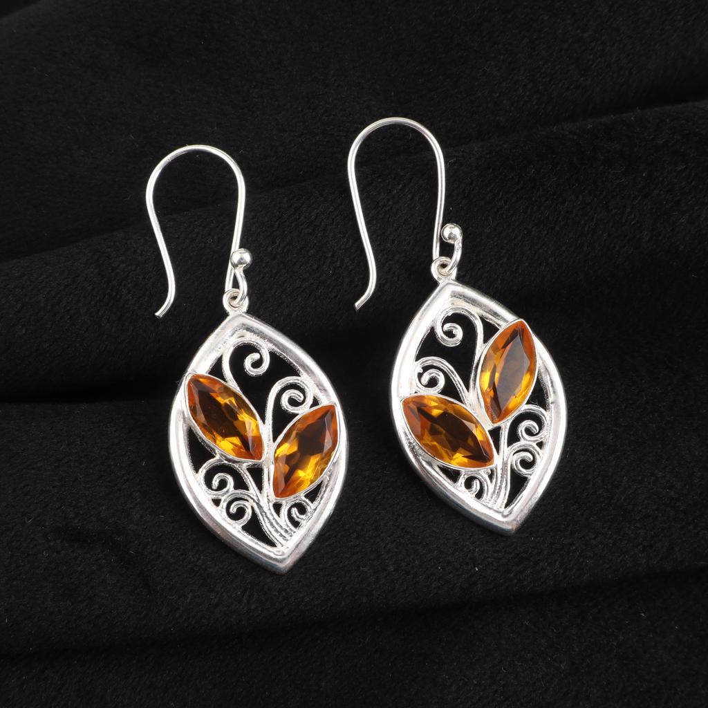Серебряная серьга с цитрином, Серьга из серебра 925 пробы ручной работы, Уникальная серебряная серьга, Серьга-подвеска CE-24-11