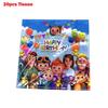 Яркий набор принадлежностей для семейного дня рождения с веселыми тарелками и элементами декора