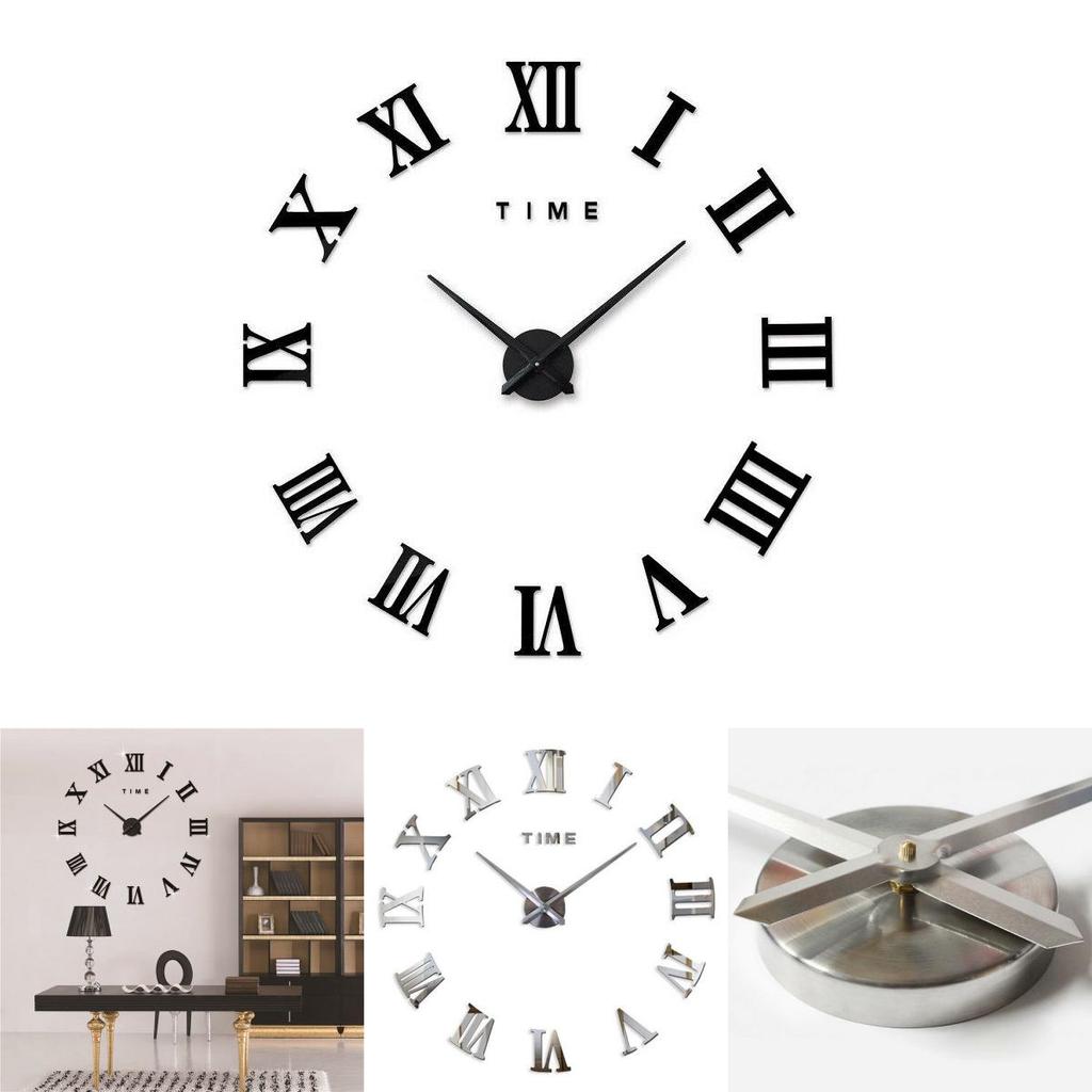 Элегантные 3D DIY Римские цифры Роскошные зеркальные настенные часы-наклейка для домашнего декора