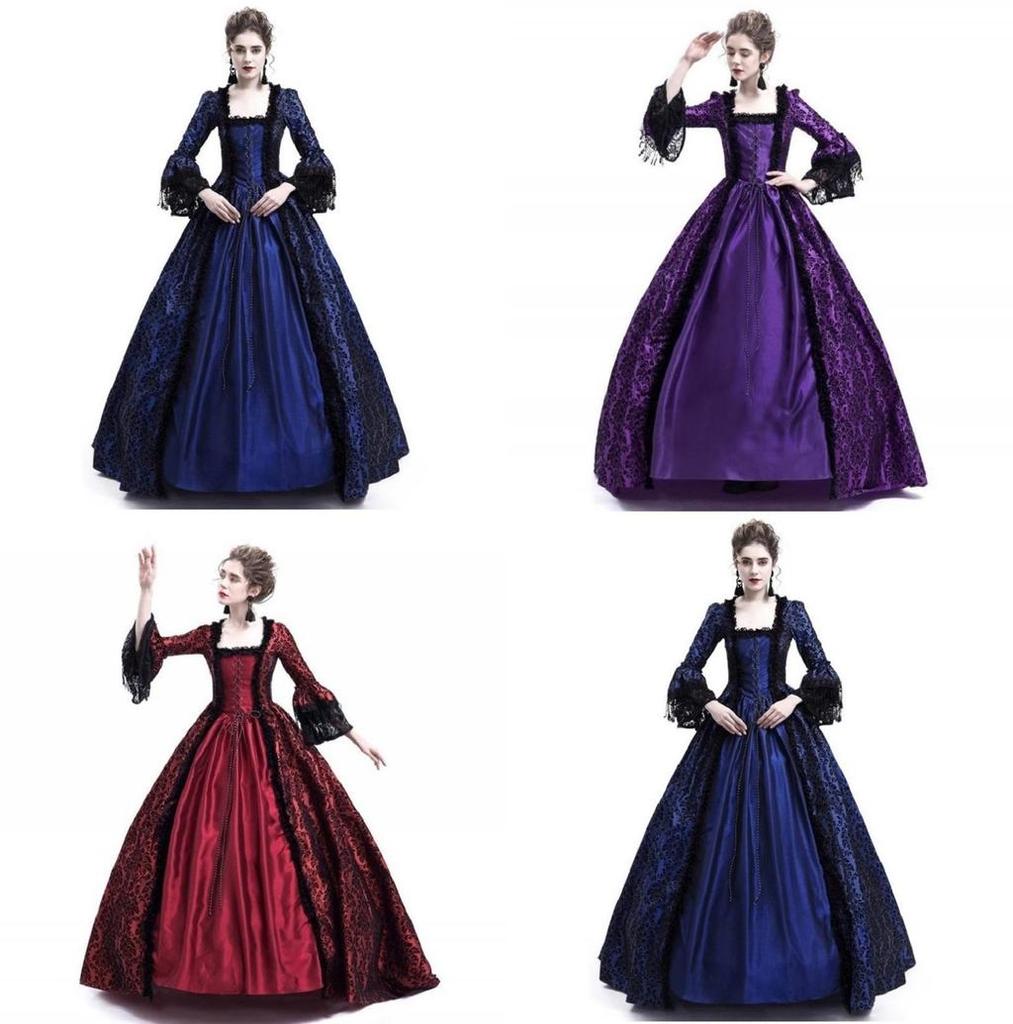Роскошное женское средневековое платье Марии Антуанетты с длинными рукавами в викторианском стиле